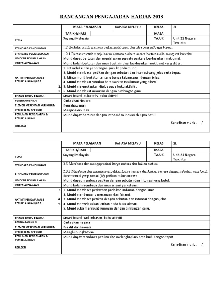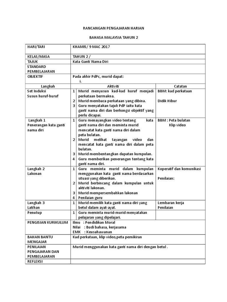 Contoh Penulisan Rph Bahasa Melayu Tahun 2 2018 Tyreenewsowens